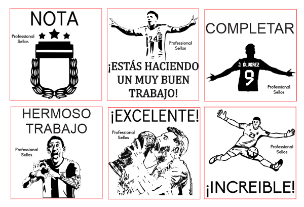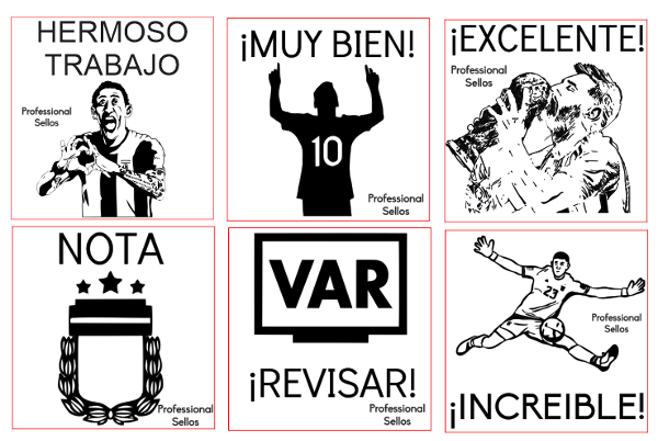 6 SELLOS EN TAMAÑO 3X3 - INCLUYE TINTA Y ALMOHADILLA